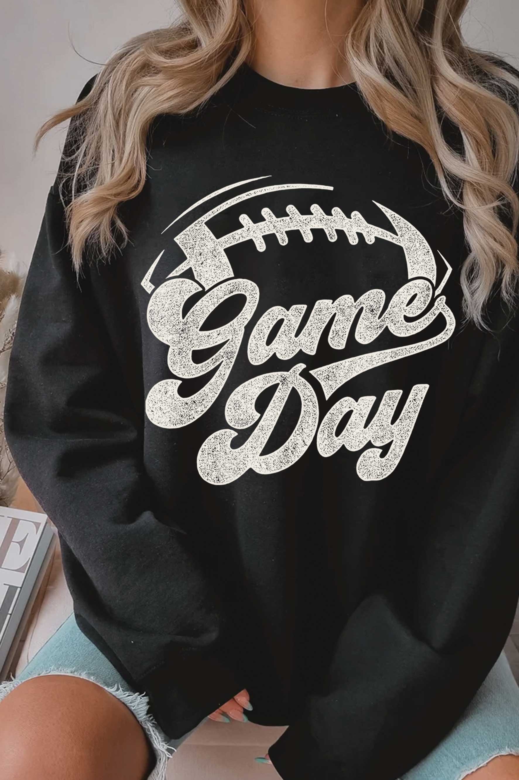 GAME DAY FOOTBALL GRAPHIC BRUSHED SWEATSHIRTS: BLACK