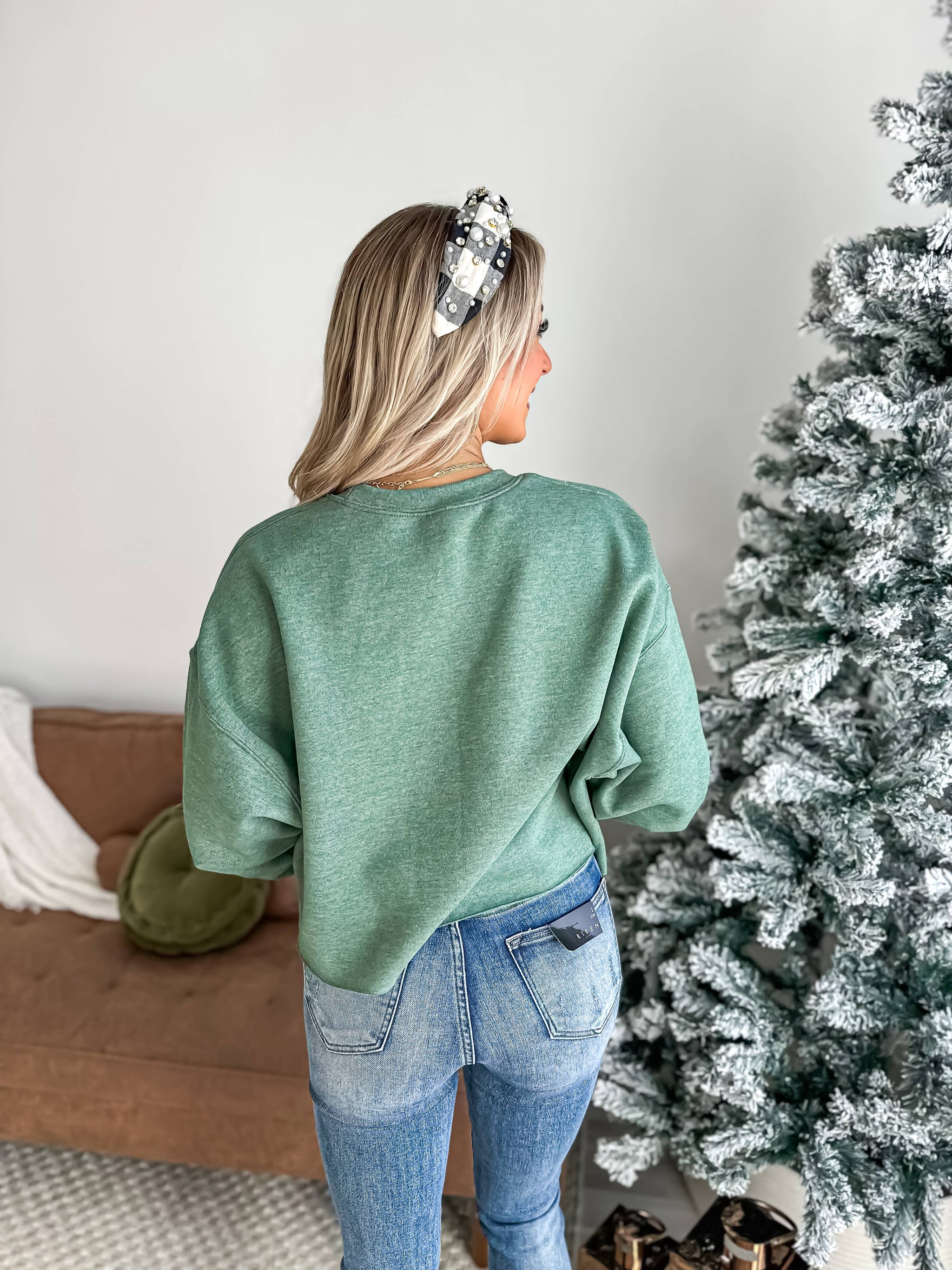 Merry Monochrome Green Cropped Crewneck Sweatshirt: XL
