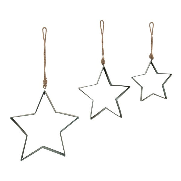 10-1/4"H, 7-3/4"H & 6"H Hand-Painted Metal Star Ornaments w/ Pattern, Mint & Cream Color