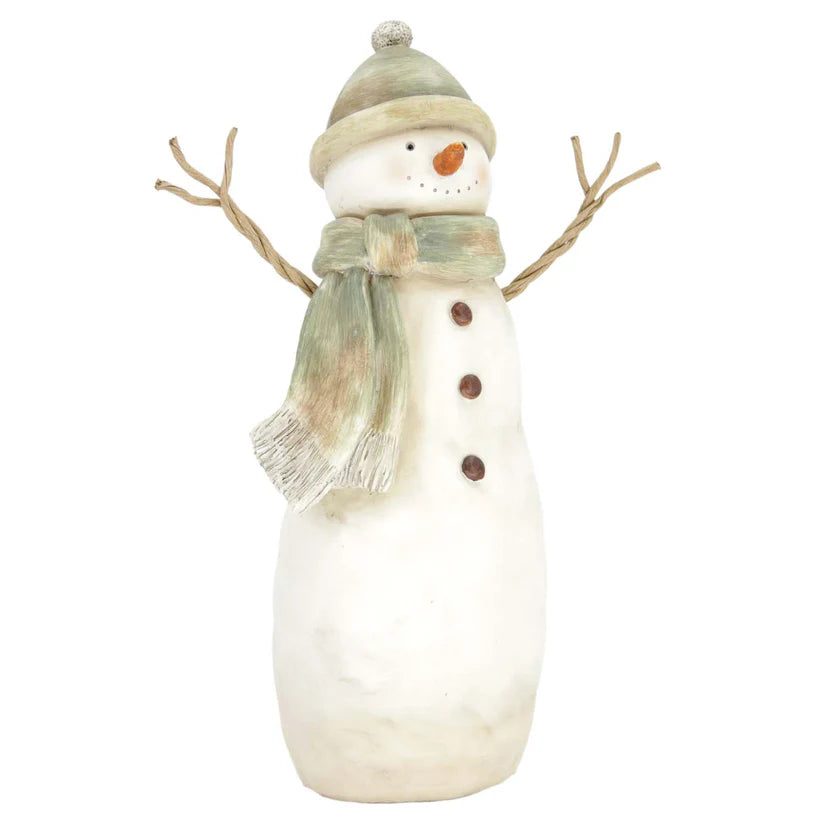 Enhance your winter decor with our charming Tall Green Scarf Resin Snowman. This festive figurine stands tall and features a vibrant green scarf, adding a pop of color to any space. Handcrafted from durable resin, this snowman is sure to bring joy and whimsy to your home.