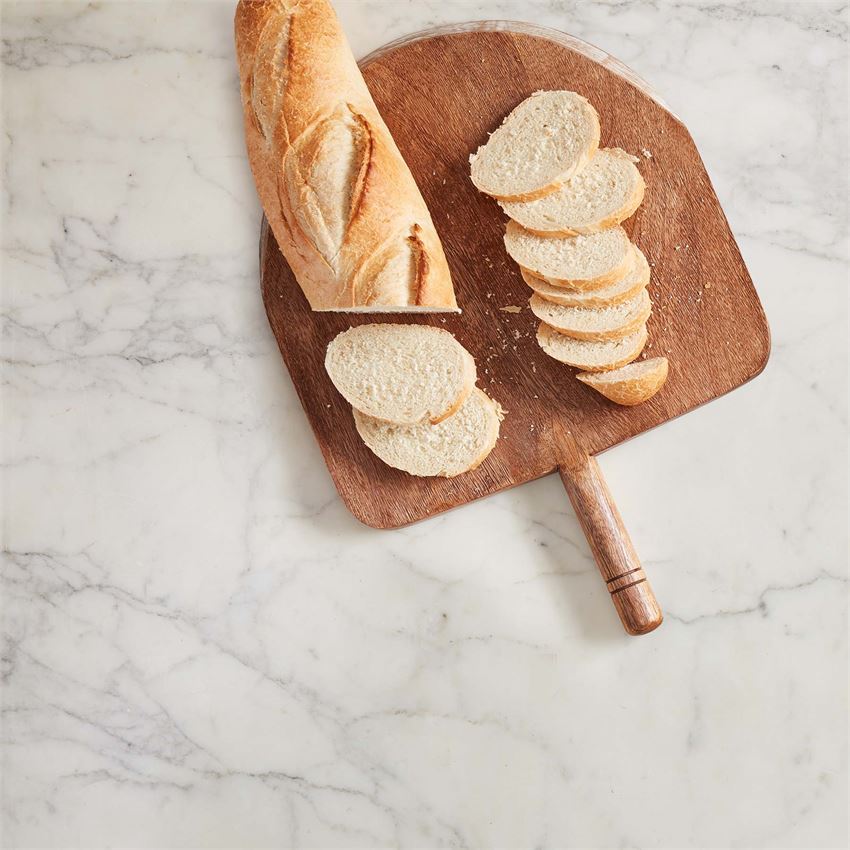2-piece set. Mango wood paddle board with cut edge detail comes cast iron finish spreader.