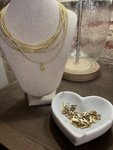 Personalize your jewelry collection with this elegant gold initial charm slide. Designed to glide effortlessly onto chains, bracelets, and necklaces, this versatile piece lets you showcase your monogram or a loved one's initials in timeless style. Crafted with quality gold finish, it adds a sophisticated touch to any ensemble while remaining understated enough for everyday wear. Mix and match with other charms to create a look that's uniquely yours.